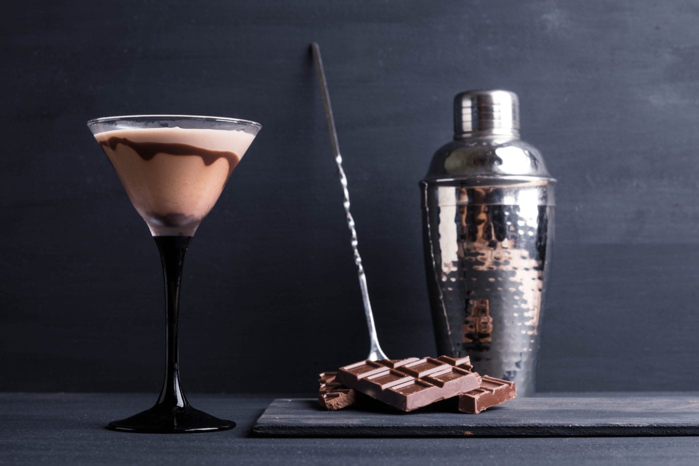 Strain, serve in martini glass with chocolate candy.